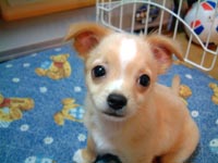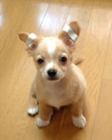 チワワは耳がピンと立つのが特徴だが、小太郎の耳は、力なくダラリとたれていた。これを補強するためにテーピングをして、2〜3日ほっといたら、耳が立った!