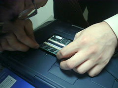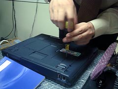 横から私が「あ〜、VAIOってメモリ挿すのにマシンを裏返すのぉ〜? PowerBookなんかキーボードはずすだけで、メチャ楽だよぉ〜」とうるさい(^^;